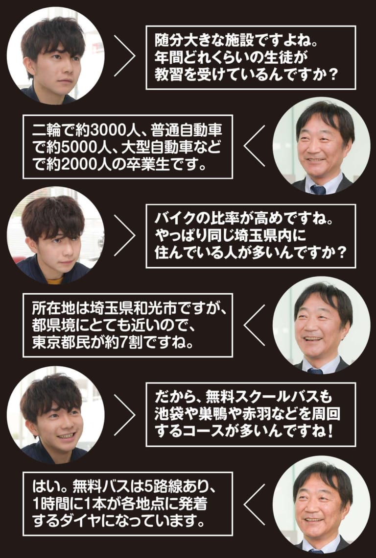 竜太郎さんが選んだ教習所は、埼玉県和光市にあるレインボーモータースクール和光。都県境に近く、東京23区内にも無料スクールバスの巡回ルートが複数設けられている。原付免許も所持していないため、公共交通機関以外に移動の手段がない竜太郎さんにとって、これが大きな魅力のひとつになった。