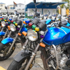 ホンダの施設なので、当然ながら教習車はホンダ車。普通二輪免許用は大定番のCB400スーパーフォア、大型二輪教習用はNC750Lだ。和光校だけで100台以上を所有。スクールで使う車両は、免許教習車とは別に用意されている。