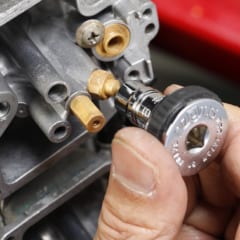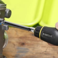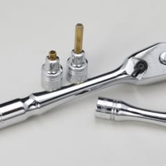 六角棒レンチやラチェットハンドルに比べて、ドライバ型ハンドル+ヘキサゴンビットの組み合わせは、早回しとオーバートルク防止の両面で勝る。グリップの感触も良い。