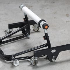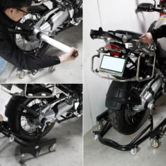 フレームとスタンドに装備された自在キャスターにより、前後左右自由に移動できるのが画期的なメンテナンススタンドが「ガレージレボ」だ。左右キャスターの幅が広く、横から押しても揺らぐことはない。 目次 1 軽い力で重たいバイクも自由に移動 軽い力で重たいバイクも自由に移動 サンデーメカニックがセンタースタンドを持たないバイクのメンテ作業を行う際、メンテナンススタンドは必要不可欠。スイングアームを支えてリ […]