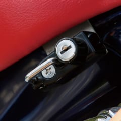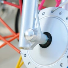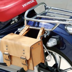 スリムなリヤキャリアで軽快なイメージに。バッグサポートで荷物の巻き込みを防ぐ。写真は本革のクラシックツールバッグ(1万6500円)。
