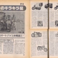 ヤングマシン連載「ぼくのきらきら星」(’78年5月号~’80年7月号、全25回)は、中沖 満氏(人物右側)が、わたびき自動車の名塗装職人として活躍する傍ら執筆、作画された。中沖氏が終戦直後の中学時代から48歳になるまで、主に’50~’60年代に出会ったバイク(=キラキラ星)や仲間たちとのバイクライフが生き生きと描かれていた。