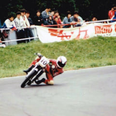 デビューウィンの勢いで『ヤングマシン』同年7月号の表紙を飾ってしまうが、国際A級ライダーにハルナ乗りをコケにされる。ハルナ乗りについては次回以降に詳報するが、要するにまだ時代が追いついていなかったのだ。それにしても勢いのある表紙。バイクブーム全盛期である。