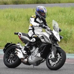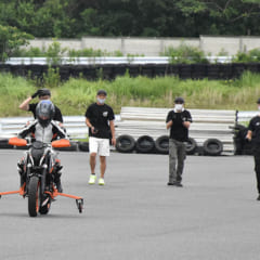 アウトリガー付きの390デュークで最初のステップである発進と停止を練習。写真は生方さんの走行シーンだ。