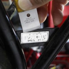 ペイント依頼の前に、サイドフレーム三角形部分に添付されている国内モデル認定コーションをスクレパーできれいにそぎ落とした。フルレストアが完成したら再度しっかり接着したい。