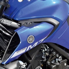 兄弟モデルのMT-25と同じ’20年3月28日に発売されたMT-03。設定されるカラーリングは3種類とも共通で、車両重量169kgも同じだ。軽量ダイヤモンドフレームや573mmのロングスイングアーム、アルミ鋳造ホイールなどを採用する。