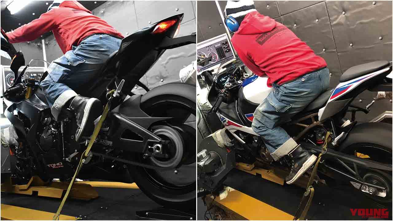 今回のパワーチェックは4速で計測。グラフ横軸が速度となってしまったため、同一回転での差は判別できないが、S1000RRは後輪の実測値がカタログ値と同一という驚異的な数値をマーク! やや辛めというダイノ[…]