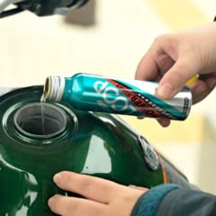 【SURLUSTER LOOP POWER SHOT】使用方法は満タンのガソリンタンクにループ パワーショットを投入するだけ。ガソリン量に対して、0.4~0.6%の添加が目安となっている。定期的に使用することで、汚れの再付着を防止する効果を発揮する。■内容量:80ml ●価格:880円
