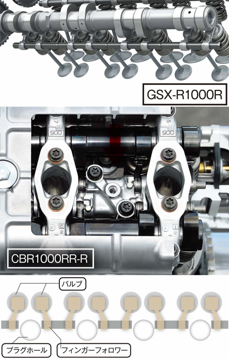 数えきれないほどの開発経験を持つプロですら引きつけられる。それほど’20ホンダCBR1000RR-Rのエンジン設計は突き抜けているのだという。史上最強の自然吸気インラインフォーとして歴史を刻んだRR-Rは、性能を追求し続けてきた直4の最後の金字塔となるかもしれない。本ページでは、他のそれとは攻めっぷりが激しく異なるフィンガーフォロワーの配置について解説する。