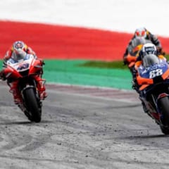 Miguel Oliveira leads ahead of Pol Espargarテッツソツス and Jack Miller during the MotoGP World Championship in Spielberg, Austria on August 23, 2020. // Joerg Mitter / Red Bull Content Pool // SI202008230362 // Usage for editorial use only //