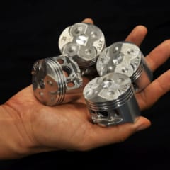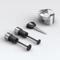 メインキーと並べると、いかに小さいパーツで出来ているかがわかる。ピストン径はφ50mmで、INバルブ(左)はφ18.9mm、EXバルブ(右)はφ15.9mmだ。これが17000rpm以上で回る。