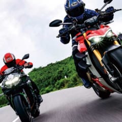 バーハンドルを装着したスポーツネイキッドの世界は、ドゥカティ ストリートファイターV4/Sの新登場でさらに過激化! いやぁマジでスゴい時代がやってきた…。ヤングマシンのテスター・丸山浩がこのカウルレス208psを、同じく200ps級スポーツネイキッド・カワサキZ H2と比較しながら徹底分析。前編はまずスペック比較から。 目次 1 ドゥカティ ストリートファイター V4S2 カワサキ Z H23 ラ […]