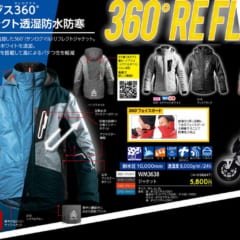 【ヒートアシスト360°リフレクト透湿防水防寒ブルゾン】●価格:4900円 ●色:黒、橙、青 ●サイズ:M、L、LL、3L、4L、5L / 【ヒートアシスト360°リフレクト透湿防水防寒パンツ】●価格:3900円 ●色:黒、橙、青 ●サイズ:M、L、LL、3L、4L、5L