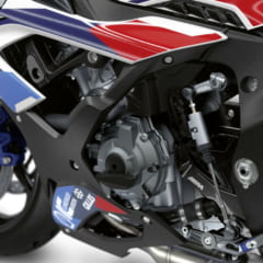 【BMW M1000RR[2021 model]】主要諸元■全長2073 全幅848 全高未発表 軸距1457 シート工832(各mm) 車重192kg(装備)■水冷4ストローク並列4気筒DOHC4バルブ 999cc 212ps/14500rpm 11.53kg-m/11000rpm 変速機6段 燃料タンク容量16.5L■キャスター23.6°/トレール99.8mm ブレーキ形式F=φ320mmダブルディスク+4ポットキャリパー R=φ220mmディスク+2ポットキャリパー タイヤサイズF=120/70ZR17 R=200/55ZR17 ●価格:未定 ●国内発売時期:未定