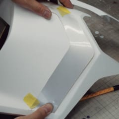 ベースカラーのパールホワイト塗装後にもクリアを吹いたが、この最終仕上げクリアまでのあいだに、各工程ごとにクリアが薄く吹かれている。ペイントノウハウも実に奥深い!!