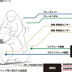 前後ウインカーにもLEDを採用。また、急制動を検知すると後続車にいち早く伝える“エマージェンシーストップシグナル”を採用した。マシンが急制動を判定するとハザードランプが高速点滅する。