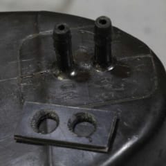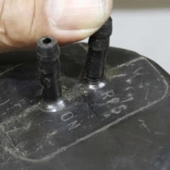 作業完了後は、2本のノズルに1本のガソリンチューブを差し込み、キャップ部分から息を吹き込みながら、水割り洗剤スプレーを補修部分に吹き付け、カニ泡が出ないか確認しよう。