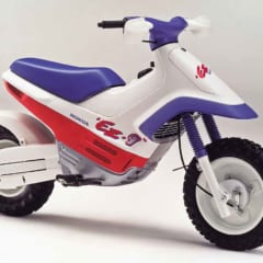 【HONDA CRM80】主要諸元 ■全長1880 全幅760 全高1100(各mm) 車重84kg ■水冷2ストローク単気筒 79cc 11ps/8500rpm 変速機6段 ■タイヤサイズF=70/100-17 40P R=90/90-14 46P ●発売当時価格:26万9000円