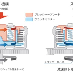 【アシスト・スリッパークラッチも新たに採用】プレッシャープレート側の回転力がクラッチセンター側の回転力を上回ると、アシストカムが作動してプレッシャープレートを引き込み、クラッチの押し付け力を増幅。軽い力でレバーを握れるようになる。逆に減速時にセンター側の回転力が上回ると、プレッシャープレートを押し出して減速トルクを逃がし、後輪のホッピングを軽減してくれる。