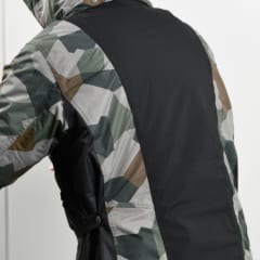 後ろ身頃のセンターにある黒い部分がストレッチ素材で、深い前傾姿勢でも背中が突っ張りにくい。身頃の横にはアジャスターもあり、フィット感は良好。