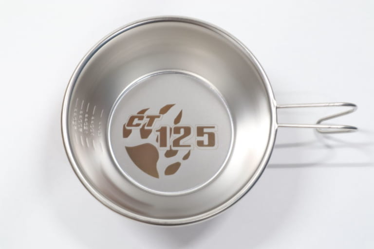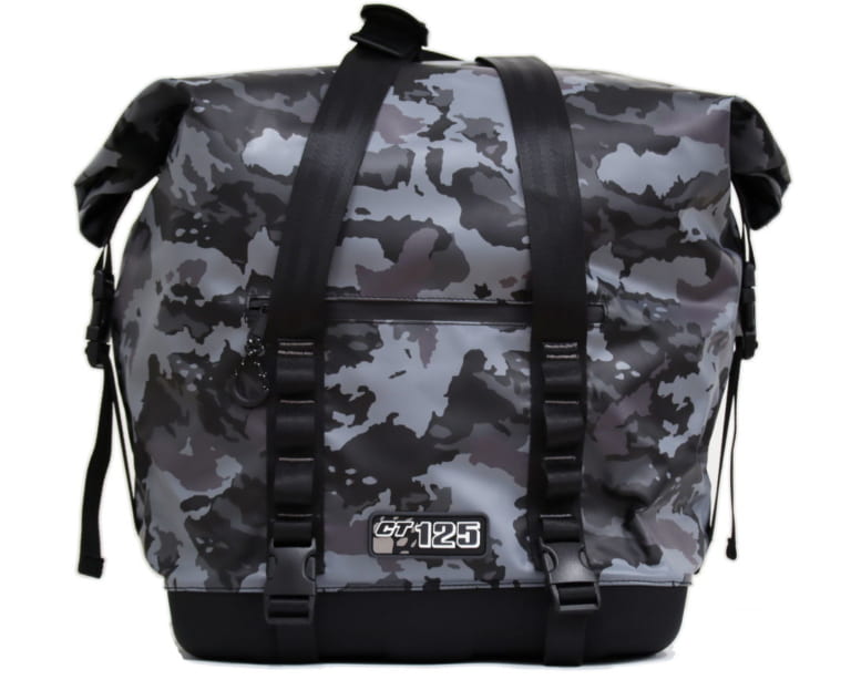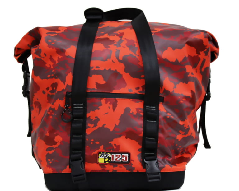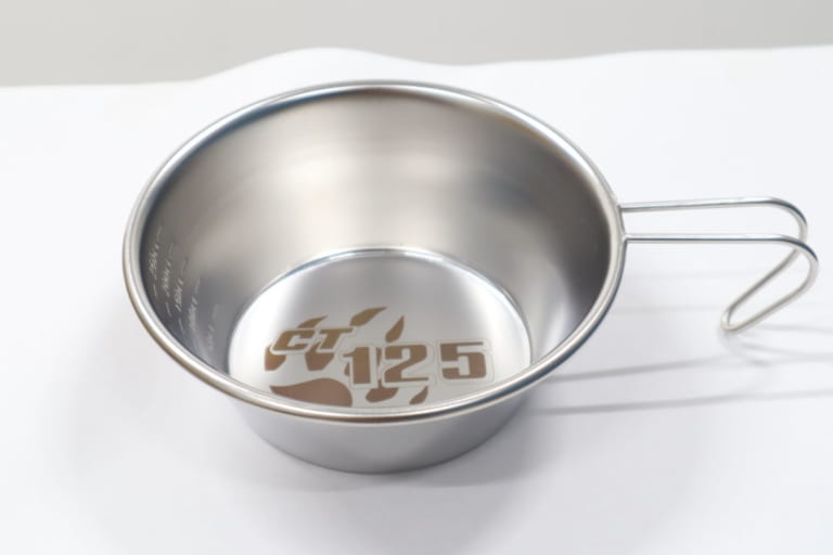 アウトドア派のユーザーに向けて、カップ底にレーザー加工でCT125ハンターカブのロゴを配したシェラカップをラインナップ。素材はステンレスで容量300cc、目盛付きで軽量カップとしても使える。また、CT125ボディカバーデザインのワッペンをワンポイントに使用したロールトップ式の防水バッグ「CT125 アウトドアソフトバッグ」は開口部を巻いて閉じる形式で、内部への埃や水の侵入を防ぐとともに、容量可変で荷物の増減にも柔軟に対応する。