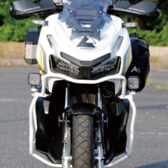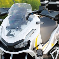 ハンドガードとドライビングランプ、クラッシュガードの三連装によってボリューム感が増し、ヘビーデューティなイメージがアップしたフロントまわり。