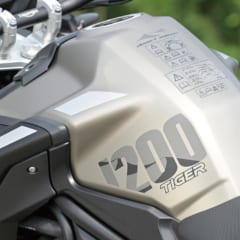 【TRIUMPH TIGER 1200 DESERT SPECIAL EDITION】主要諸元 ■全幅830 全高1470 軸距1520 シート高835-855(各mm) 車重273kg ■水冷4スト並列3気筒 1215cc 141ps/9350rpm 12.4kg-m/7600rpm 変速機6段リターン 燃料タンク容量20L ブレーキF=Wディスク R=ディスク タイヤサイズF=120/70R19 R=170/60R17