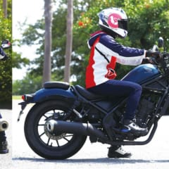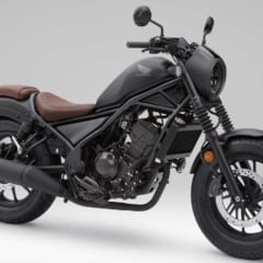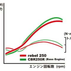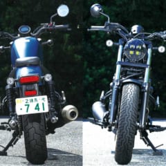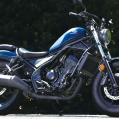 【HONDA REBEL250】主要諸元■全長2205 全幅820 全高1090 軸距1490 シート高690(各mm) 車重170kg ■水冷4スト単気筒DOHC4バルブ249cc 最高出力26ps/9500rpm 最大トルク2.2kg-m/7750rpm 6段リターン 燃料タンク容量11L ■タイヤサイズF=130/90-16 R=150/80-16 ●価格:59万9500円
