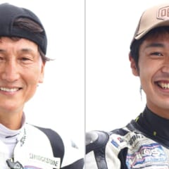 [左]【テスター・丸山浩】WITHME会長にしてヤングマシンメインテスターを務めるおなじみの顔。真夏の炎天下にも負けず、一旦サーキット上を走り出すと止まらない。まさに鉄人。[右]【テスター・神永暁】WITHMEの若き社長。社内業務優先で自分で走る機会を取られてしまうのが、ちょっとした悩み。久々の最強スーパースポーツサーキットテストに思わず笑みが。