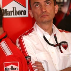 2005年・第5戦イタリアGPのピットでライダーの走りを見守るクラウディオ・ドメニカーリさん。