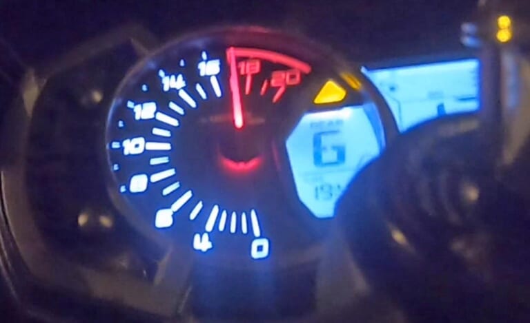 [右] レッドゾーンが始まる1万7000rpmを超えて伸び続けるZX-25R。1000mの通過時には実測で169.1km/h、メーター読みで170km/h台を指しており、まだ伸びそうだった。