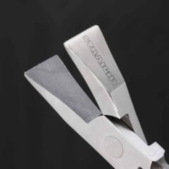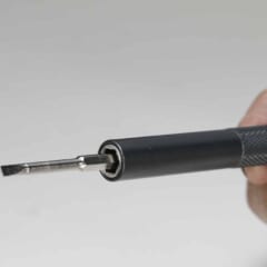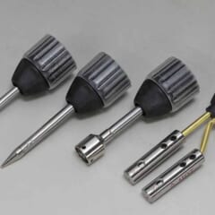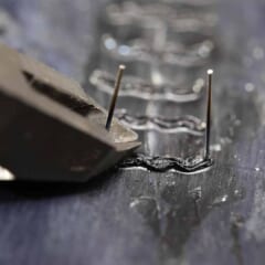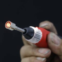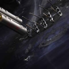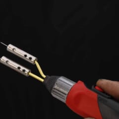 溶着ピンヘッドは、二叉に分かれた先端部分がデザイン的な特徴となっている。コテ本体がスリムなので、入り組んだ部分にもアプローチしやすい。