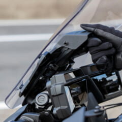 ウインドスクリーンはレバーをつまむことでワンタッチ調整が可能。