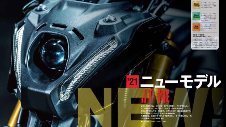 巻頭で続々と登場してきた2021年ニューモデルの詳報に全力投球! 新設計エンジン搭載でフルモデルチェンジした新型グロムや、日本最古のスポーツバイクブランドが復活したメグロK3、排気量アップした新型MT-09、軽量化とオフロード性能を向上したCRF250L/ラリー、外観が大きく変わったX-ADVやNC750Xといったモデルに加え、外車も徹底解説。CT125ハンターカブおよびクロスカブ110のニューカラーもスクープしています。