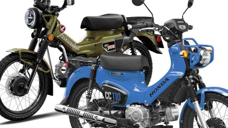 一方、スーパーカブ110をベースにフレームマウントのLEDヘッドライトなどのモディファイしたクロスカブ110は、本誌独自情報によるとブルー系のカラーが投入されるらしい。ストリートにも映えるスタイルとカラーだけに、コッチも人気を呼びそうだ。こちらの予想発売時期はCT125ハンターカブよりも少し早いタイミングになりそう。