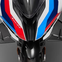 【'21 BMW M1000RR M MOTOSPORT/M COMPETITION PACKAGE】300km/hでダウンフォース値=16.3kgを発生する。 ●国内参考予定価格:500万円 ●発売時期:'21年初夏