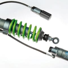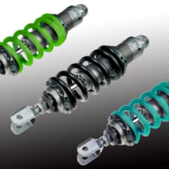 【NITRON REAR SHOCK R1】ナイトロンとのコラボによるリヤショック。R1シリーズはもっともベーシックなタイプながら、プリロードと伸/圧一体型の減衰調整機構を備えたモデル。ターコイズとブラックの他にオリジナルのライムグリーンが発売予定だ。●価格:10万4500円