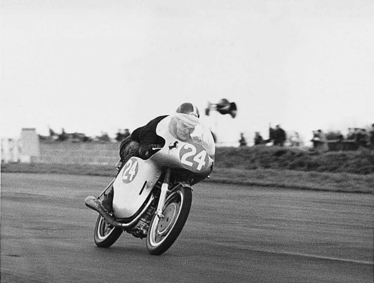 1960年の世界GPでドゥカティの250レーサーを駆るマイク・ヘイルウッド。