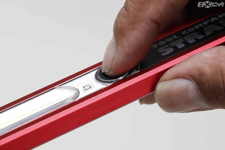 4気筒のキャブレターバンドなど光が届きづらい場面で威力を発揮。本体裏側にマグネットがあり、金属面に貼り付けられる。