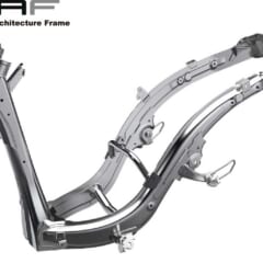 コチラがDio110のフレームを撮影したもの。ボディパネルに隠れてよく見えないが、写真の明度を上げると確かにプレス材を用いていることがわかる。