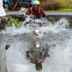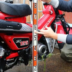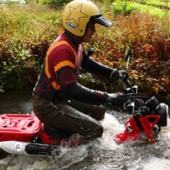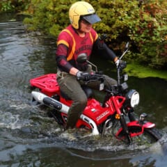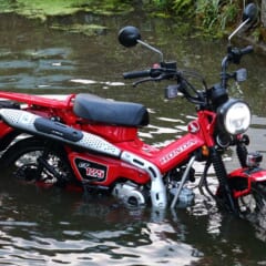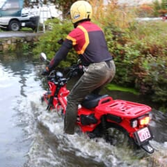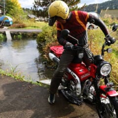 現在、売れに売れているホンダCT125ハンターカブにまつわる”噂の真相”を確かめる! その1番勝負は、「ハンターカブは水中を走れるらしい!?」 シュノーケルのようにリヤキャリアの高さまで上げられたエアの取り入れ口、そしてアップタイプのマフラーに注目し、誰もが気になる(?)渡河性能――つまりどのくらいまで水に浸かっても大丈夫なのか検証した。 ※注:今回の実験は私有地で、管理者の許可を得た上で行ってい […]