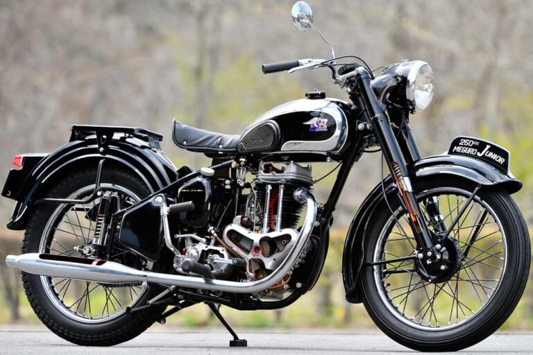 【日本車初の250ccシリーズ】’30年代から目黒製作所が「メグロ」ブランドでバイクの販売を開始。最盛期を迎えた’50年代、特に人気を得たのが国産初の250ccとなるジュニアシリーズだ。スタイルは英国車風で、直立シングルが特徴。初代エストレヤは特にソックリだった。