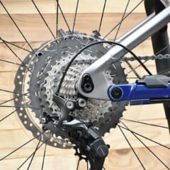変速機はシマノのデオーレXTで、変速段数は11段。カセットスプロケットは11〜46Tとワイドで、アシストなしでも楽しめる設定。