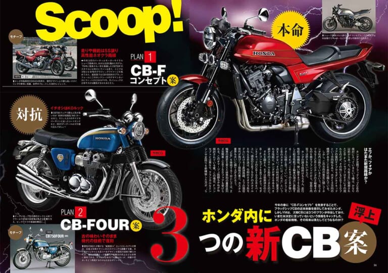 ホンダ内で3つの次期フラッグシップCB案が浮上、しかし社内は割れている…という情報を掴んだのは、『ヤングマシン』’20年12月号。その3案とは、①’20年春に発表したCB‐Fコンセプト ②CB750フォアモチーフ車 ③現行1300を軽量&先鋭化させたモダンネイキッド、というものだった。