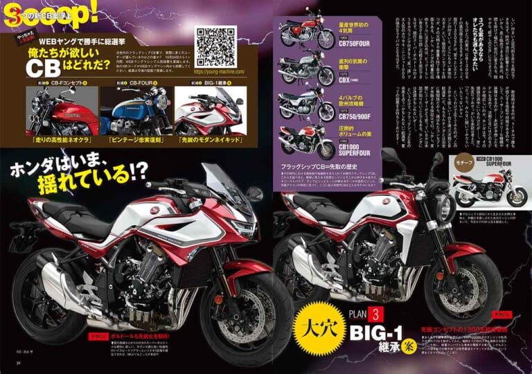 「ホンダ社内に“3つの次期CB案”が浮上中。しかし意見は割れているらしい…」それを聞きつけたヤングマシンのおせっかい企画が、‘20年12月号で展開した「勝手に次期CB総選挙」だった。次期CB案を読者に問うた、その結果とは……?