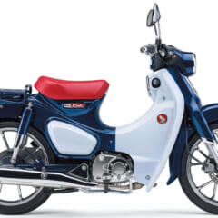 【'18 HONDA SUPER CUB C125】主要諸元 ■全長1915 全幅720 全高1000 軸距1245(各mm) ■車重110kg(装備) ■空冷4スト単気筒OHC 2バルブ 124cc 9.7ps/7500rpm 1.0kg-m/5000rpm ■タイヤF=70/90-17 R=80/90-17 ■希望小売価格:40万7000円