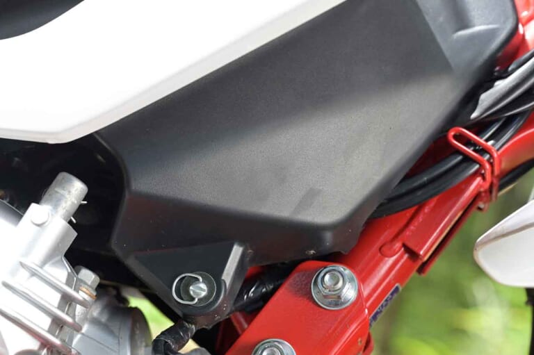 山下氏のセローは工具を使わないと車載工具を取り出せなかったが、工具なしで開閉できるようにネジが変更されている。ユーザーの声を反映し、使い勝手を向上する変更が行なわれている。