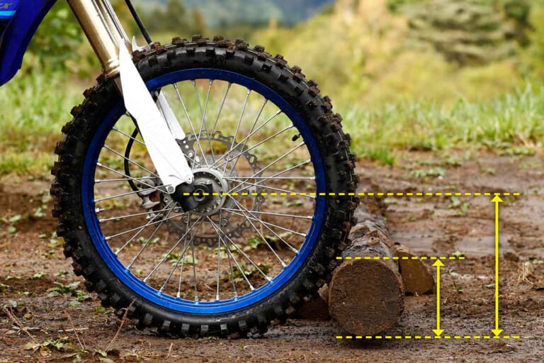 正直、直径20㎝程度の丸太であれば、座ったままでも通過できてしまう。ただし、スタンディングよりもサスが過剰に動いてしまうため理想ではない。