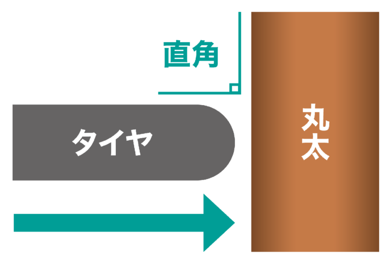 マナブ先生:そして丸太攻略のセオリーとして、基本的に丸太に対して直角に進入しましょう。斜めに進入するとマシンがヨレてしまい、スタックしたり、最悪は転倒の危険も出てきます。