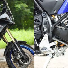 【YAMAHA TENERE 700 ABS】■全長2370 全幅905 全高1455 軸距1595 シート高875(各mm) 車重205kg ■水冷4ストローク並列2気筒DOHC4バルブ 688cc 72ps/9000rpm 6.8kg-m/6500rpm 変速機6段 燃料タンク容量16L ■タイヤサイズF=90/90-21M/C 54V R=150/70R 18M/C 70V ●色:マットダークグレーメタリック6 ●価格:126万5000円
